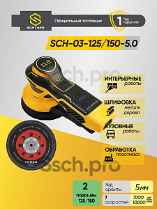 SCH-03-125/150-5.0-K шлиф. машинка ручная 220V/50Hz,350W,эксцентрик 5,0 мм,опора 125мм/150мм, брелок